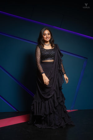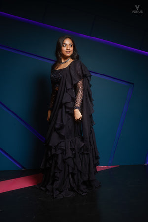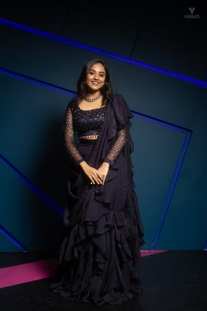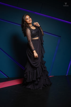 Dupatta: The ruffle dupatta is the showstopper element of this set. Layered with soft cascading ruffles, it adds volume, texture, and drama, bringing out a bold yet refined aesthetic.