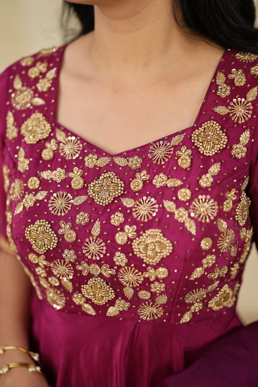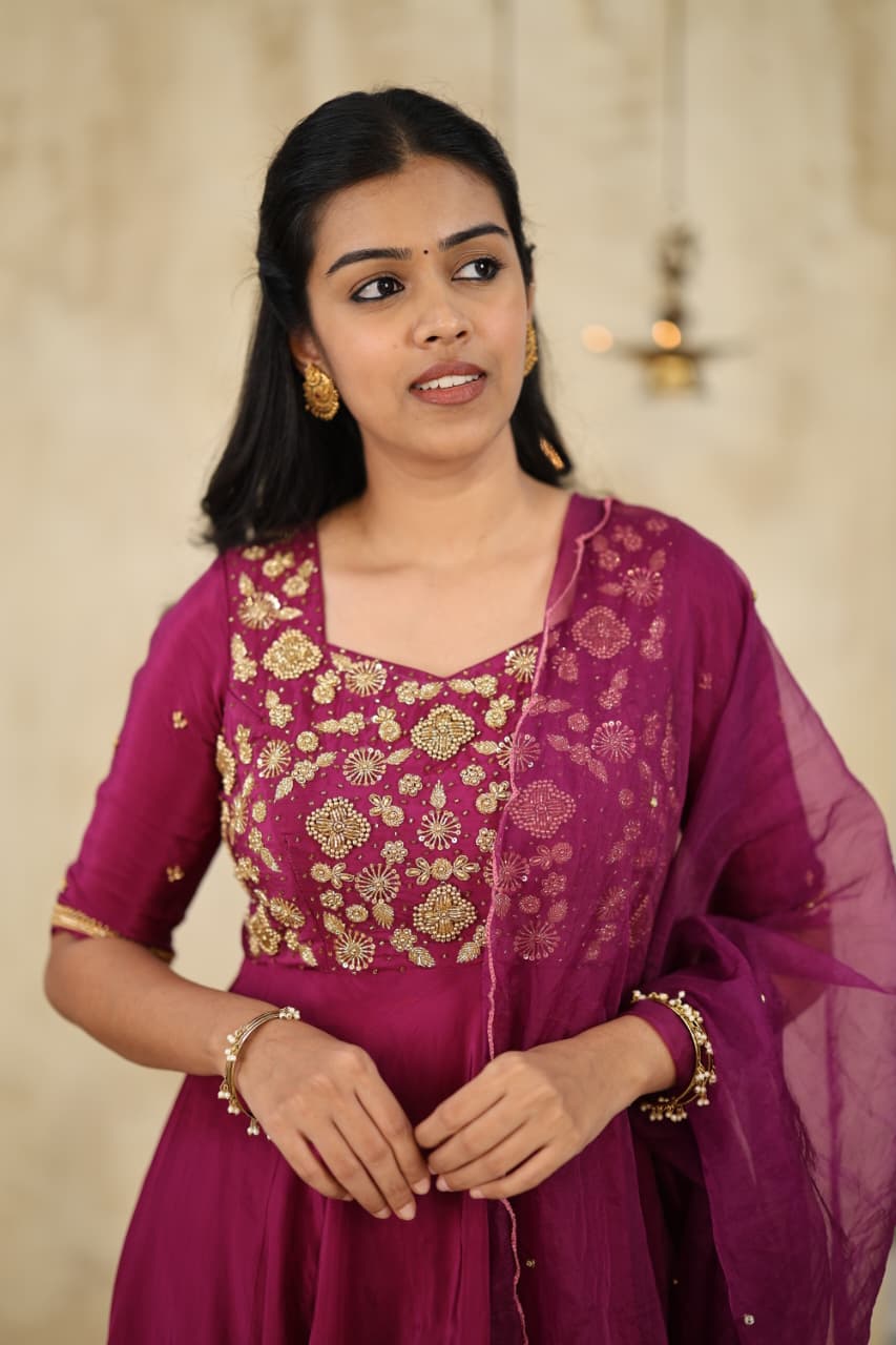 Handwork – The rich hand embroidery on the yoke adds a touch of heritage craftsmanship, making this piece a timeless treasure.