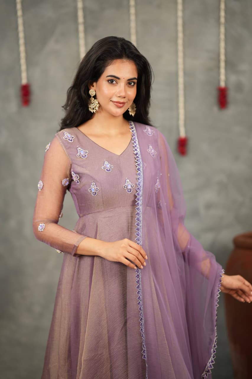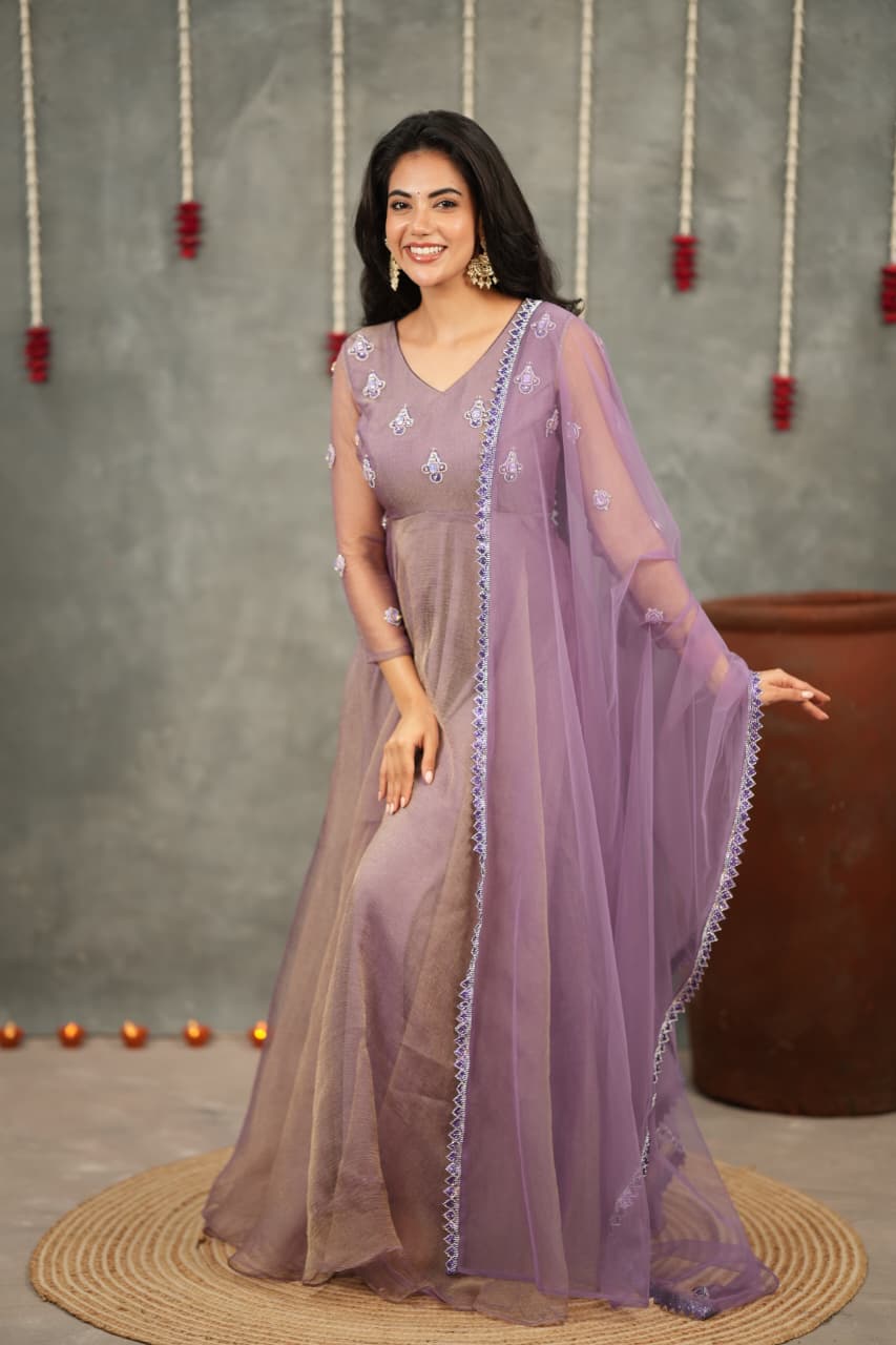 Grace meets tradition in our Niharika Collection, crafted from luxurious Tissue Banarasi Silk adorned with elegant handwork detailing. The rich texture of the fabric paired with a soft net dupatta adds a dreamy, ethereal charm—perfect for those who love subtle luxury.