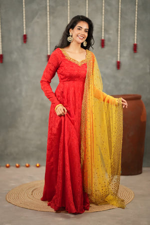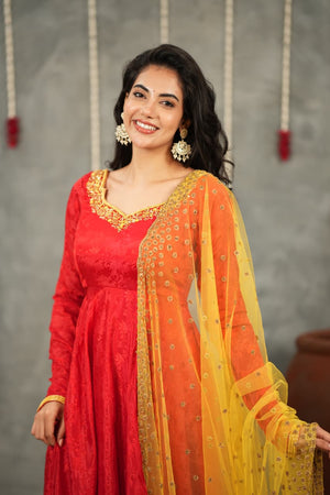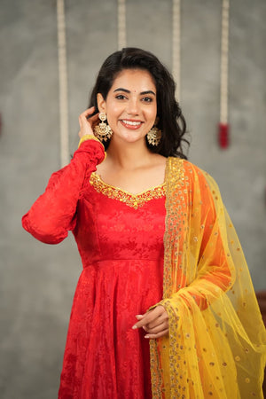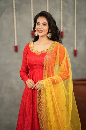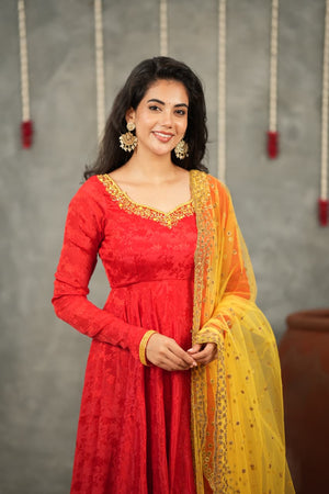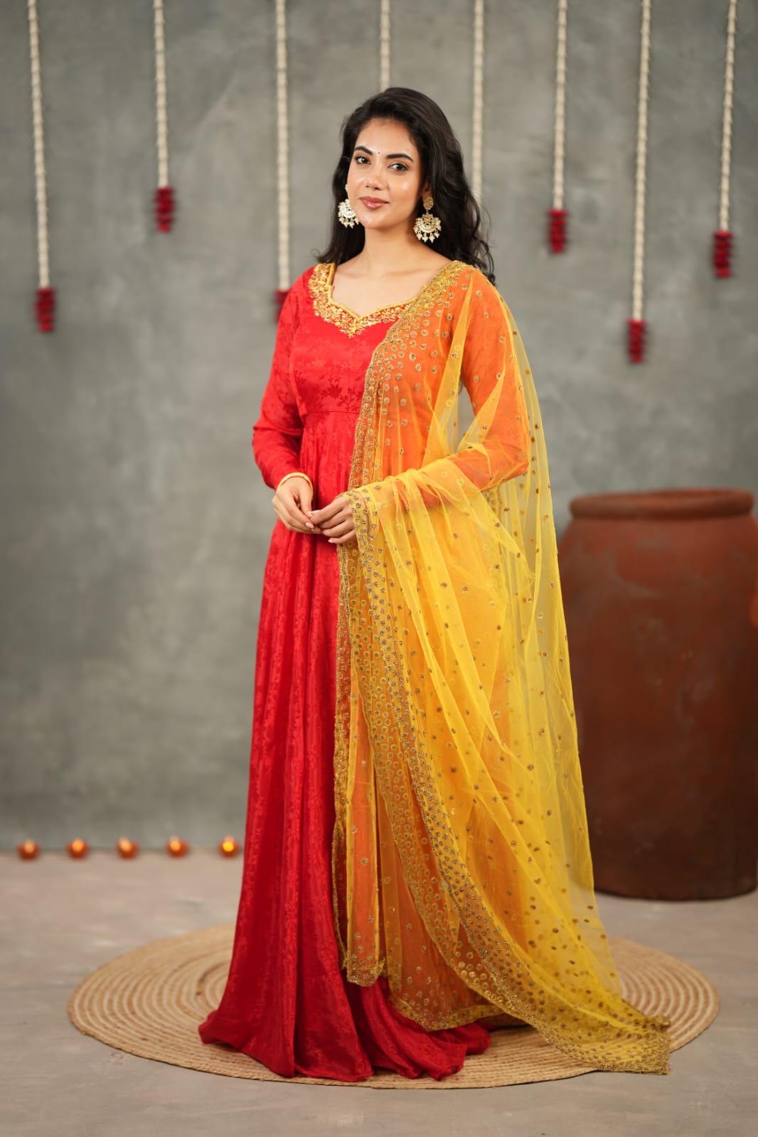 Fabric: Crape Self-Design with Premium Net Dupatta